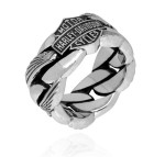 Harley-Davidson® Heavy Chain Link B&S Logo Ring Sterling Silver Men's Wedding Band HDR0188
