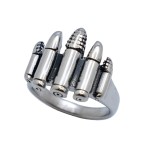 The Men’s 5 Bullets Ring Flaunts Five Bullets across the Top in a Variety of Styles, like a Tiny Arsenal for your Finger. Crafted in High-Polished Stainless Steel with a Smooth Tapered Shank. Black Accents to Highlight the Design—because nothing says “Bad to the Bone” quite like Wearing a Miniature Firing Squad on your Hand. A True Showstopper in every sense.