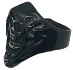 Men's Black & Silver Grim Reaper Ring Biker Two Tone Stainless Steel Ring Sizes 8-15