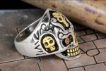 Men's Holy Toledo 4 Skulls Ring with Red Eyes Two-Tone Stainless SteelSizes 9-15